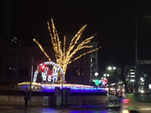 昨日から秋田です。 この時期なのに雨降りでした。 秋田道もまったく雪景色もなく、暖冬を実感してます。 この画像は、雨ですがナイトランした時に撮った秋田市内の街中のライトアップ風景。 昨日のお昼に秋田市内のたんぽぽというラーメン店でたんぽぽ醤油…